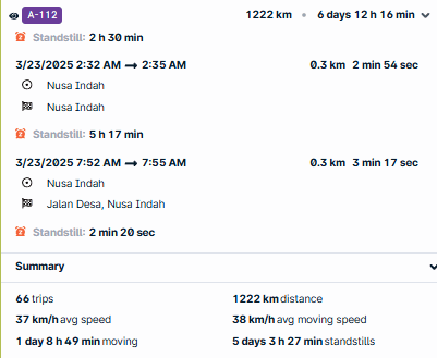 • Ringkasan perjalan (Jarak, Waktu, Kecepatan, dll.)
