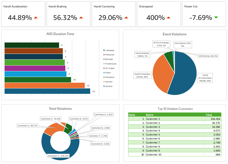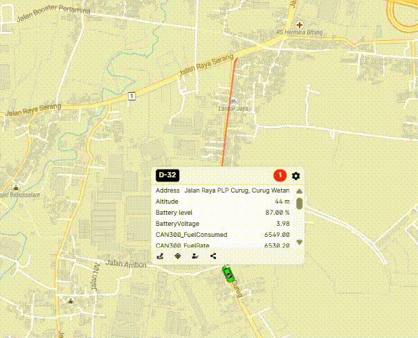 • Area pemantauan kecepatan, status kendaraan atau penyimpangan rute perjalanan
